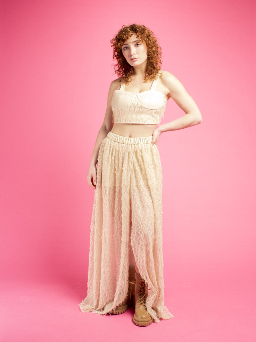La collection H est idéale pour créer un look bohème très chic avec sa dentelle raffinée et sa belle couleur beige.