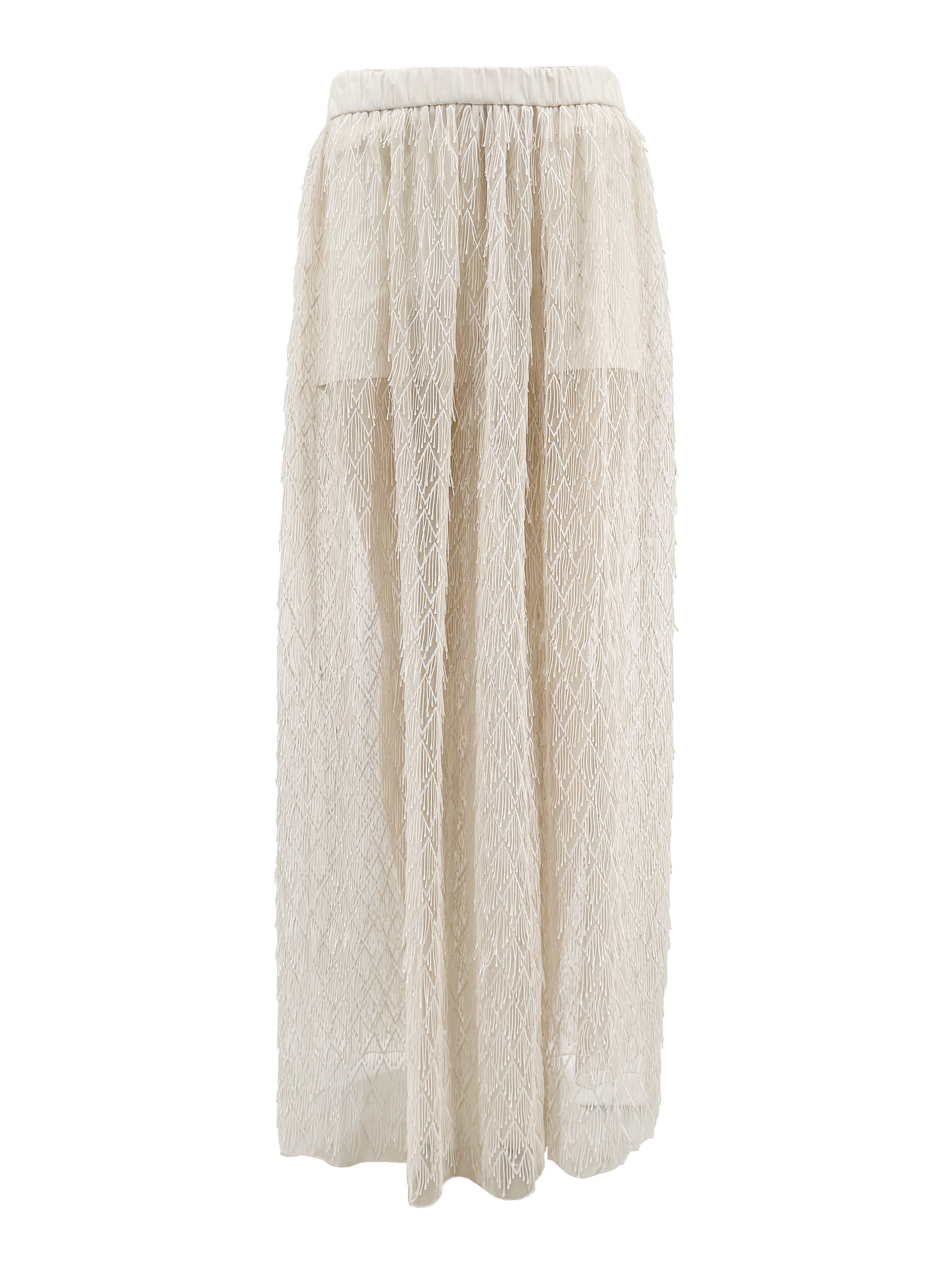 La jupe affiche, quant à elle, une transparence très féminine sans pour autant être vulgaire. Le secret ? Un joli petit short est intégré à la jupe qui présente une fente vertigineuse.