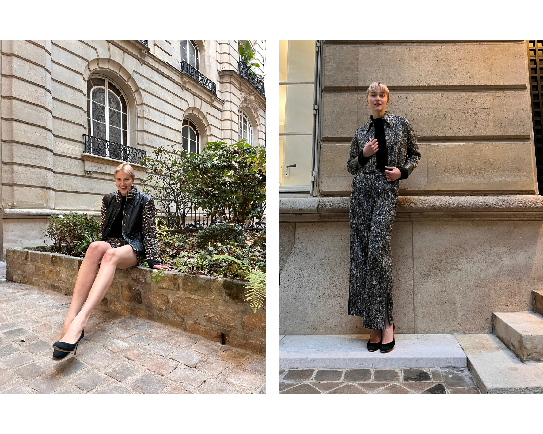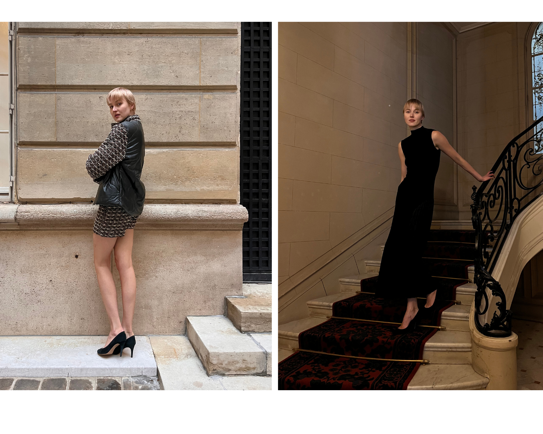 Dans ce shooting, Angelika s’impose comme l’incarnation parfaite de l’allure MARGOT VII. Sa présence, à la fois calme et puissante, donne vie aux pièces avec une élégance qui semble presque naturelle. Chaque mouvement, chaque attitude révèle une forme de précision et de retenue qui correspondent exactement à la vision de la maison : une féminité affirmée, contemporaine, qui n’a pas besoin de s’expliquer. Angelika parvient à insuffler une dimension presque narrative aux looks, comme si chaque tenue racontait une émotion différente: la force tranquille d’un soir d’hiver, le mystère d’un escalier plongé dans l’ombre, la liberté d’un instant volé dans une cour parisienne.