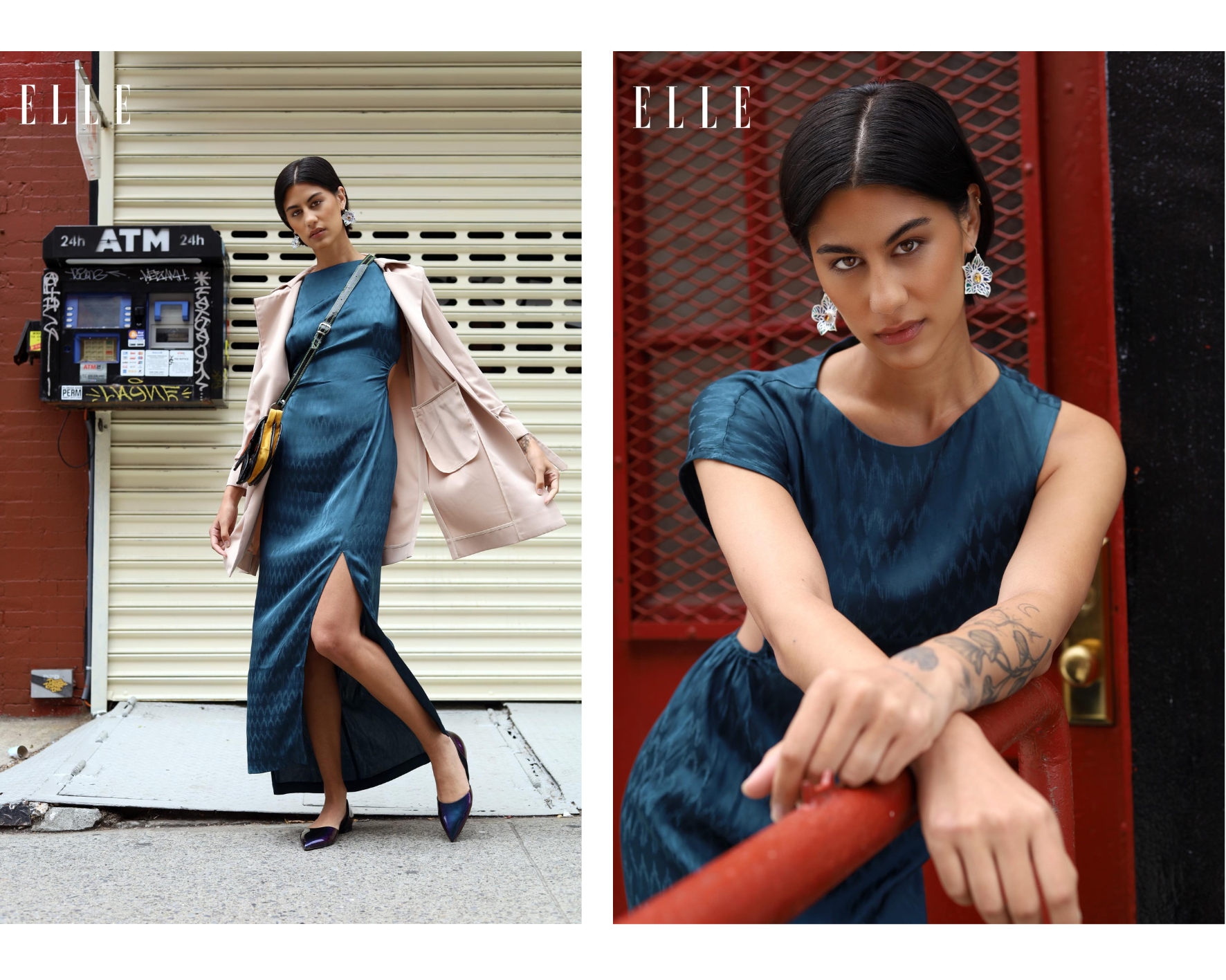 La portée de la collection ME dépasse aujourd’hui le cadre de la marque pour s’inscrire dans un dialogue plus large avec la scène éditoriale internationale. Plusieurs magazines ont récemment intégré des pièces de la collection dans leurs shootings, confirmant son potentiel visuel et stylistique. Dans les pages de Stylé Cruze Magazine, un total look issu de la collection ME est mis en scène dans une esthétique épurée et contemporaine. Le duo pantalon-top y est stylisé de manière à souligner la force des lignes et la précision des coupes. L’éditorial joue sur une palette sobre et une mise en image presque graphique, révélant la capacité des pièces à exister dans un univers visuel fort tout en conservant leur identité. Imirage Magazine choisit quant à lui d’inscrire la robe ME Bleu dans un contexte new-yorkais. Entre architecture brute et énergie urbaine, la pièce se distingue par sa fluidité et sa présence silencieuse. Le contraste entre la rigidité de la ville et la légèreté du vêtement crée une tension visuelle particulièrement intéressante. La robe devient un point d’ancrage, presque une respiration au cœur du décor. Dans Bazaar Vietnam, une pièce de la collection, une combinaison est intégrée à un éditorial plus narratif, où le vêtement participe pleinement à la construction de l’image. Ici, la sophistication ne réside pas dans l’excès mais dans la précision. Le styling met en avant la capacité de la pièce à s’inscrire dans un récit, à dialoguer avec d’autres éléments visuels tout en conservant sa singularité.