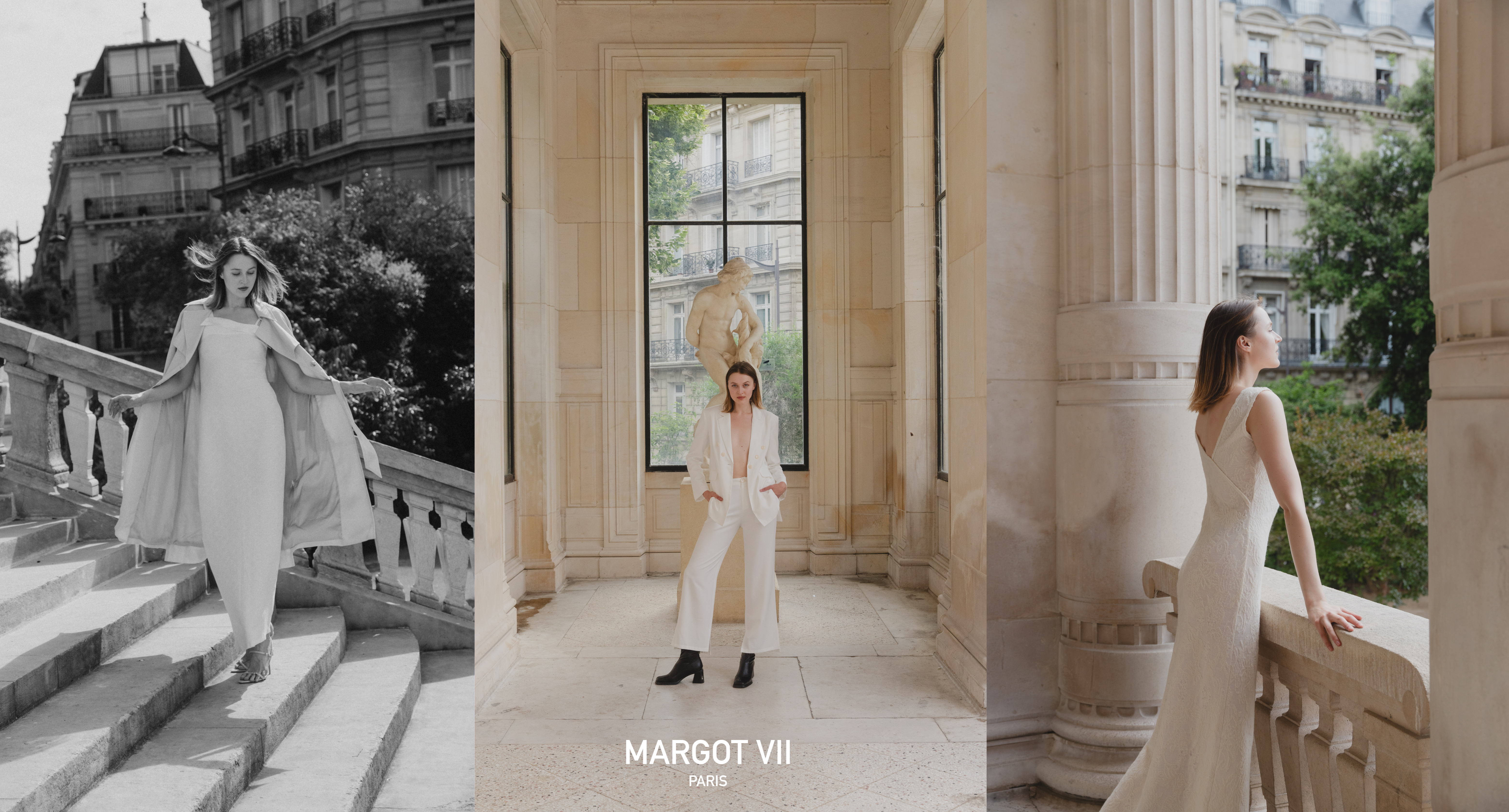 MARGOT VII prône l’élégance de la femme tout en lui permettant de se différencier grâce à ses pièces inspirées par l’art. Du cinéma français à la peinture contemporaine, ces domaines sont des grandes sources d’inspirations pour la fondatrice qui souhaite également ajouter une touche sentimentale et une vision futuriste. Traduit par une asymétrie de bi-matières, les lignes directrices de nos collections sont contemporaines et épurées.