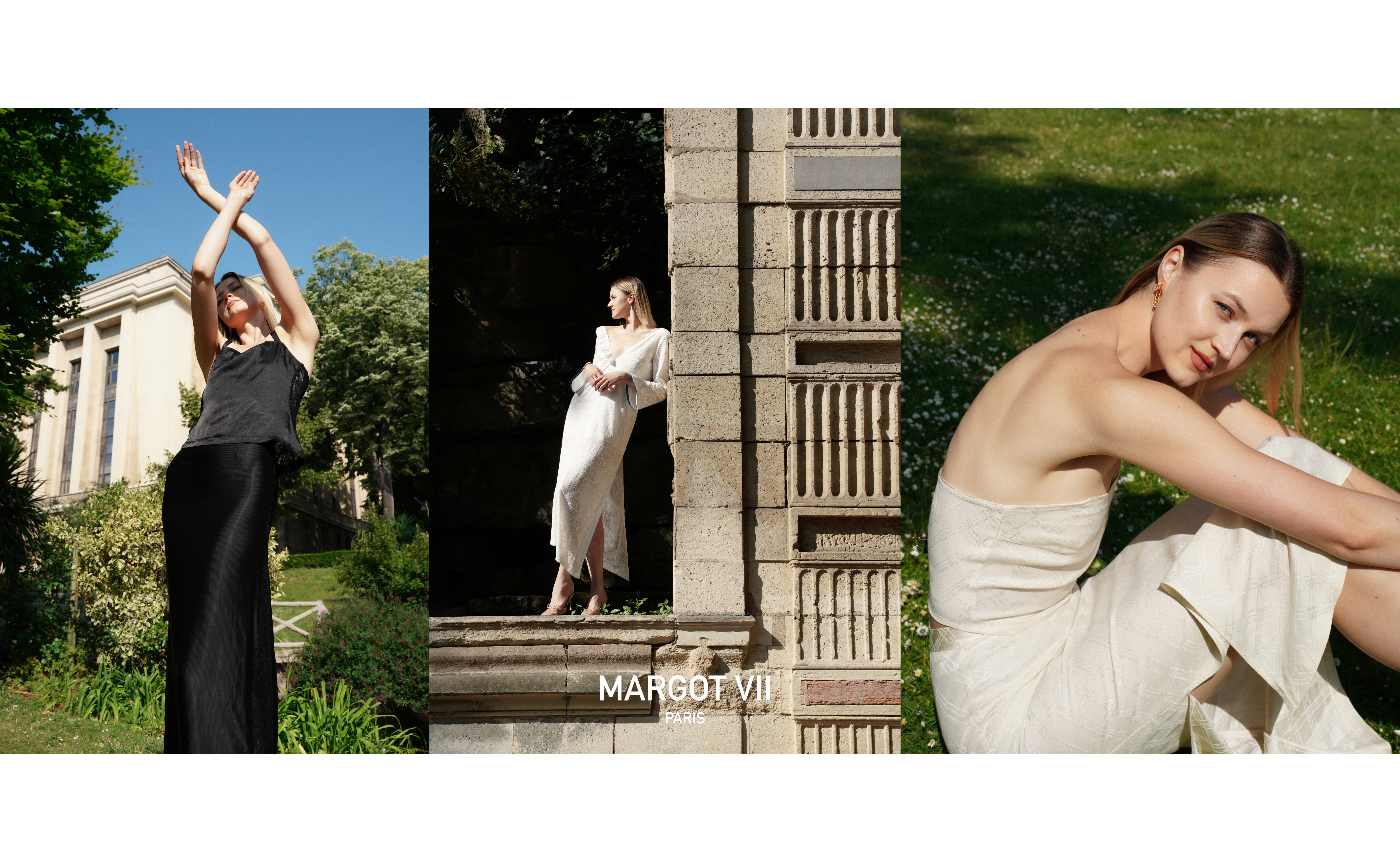 MARGOT VII prône l’élégance de la femme tout en lui permettant de se différencier grâce à ses pièces inspirées par l’art. Du cinéma français à la peinture contemporaine, ces domaines sont des grandes sources d’inspirations pour la fondatrice qui souhaite également ajouter une touche sentimentale et une vision futuriste. Traduit par une asymétrie de bi-matières, les lignes directrices de nos collections sont contemporaines et épurées.